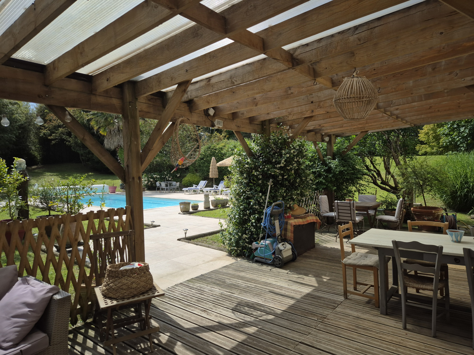Piscine coque avec balnéo et nage contre-courant, rideau de sécurité électrique avec capteurs solaires. 2 Portails dont 1 électrique. Cave, Atelier, Préau. Système d'alarme partout.